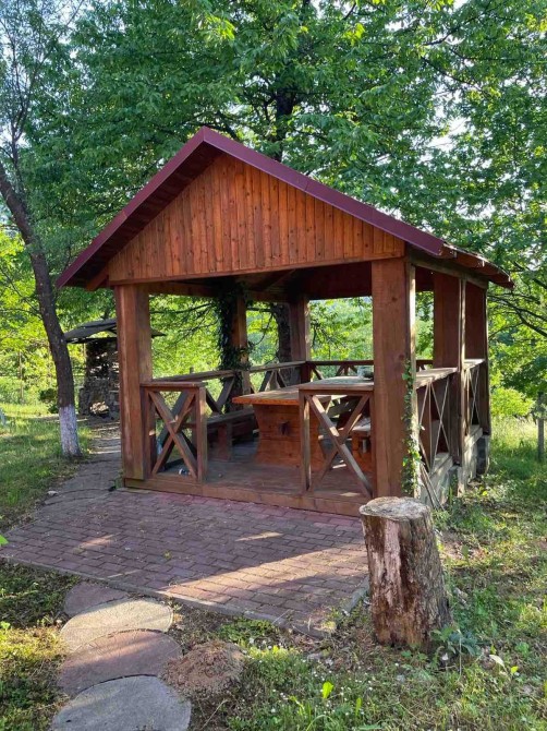 Також є гарно оборудована шашлична зона, є бесідки та мангали.