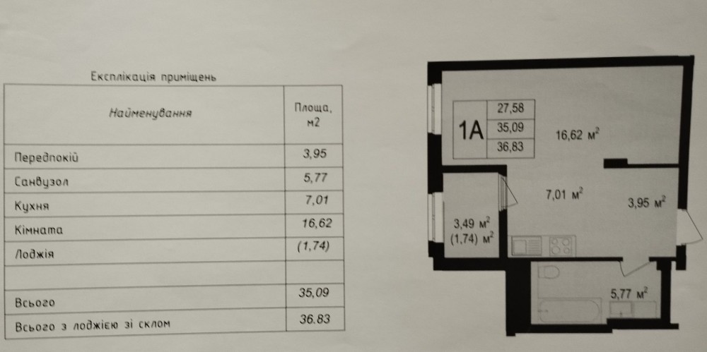 • Загальна площа 36.82 м2