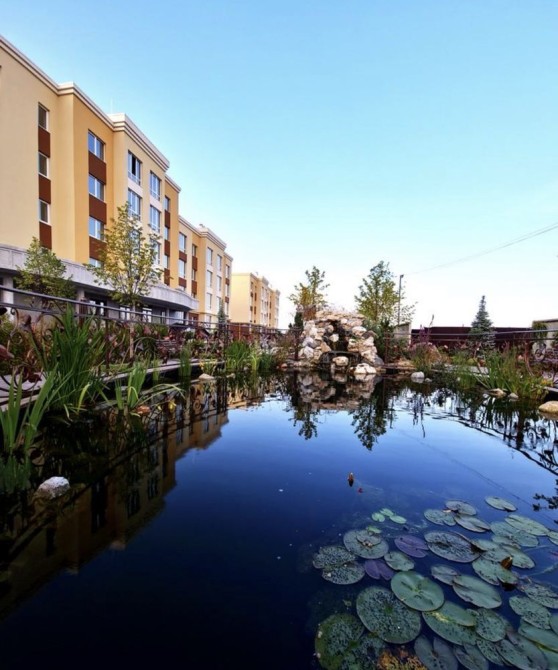 Комплекс має закриту територію та цілодобове відеоспостереження для вашої безпеки. На території є алеї для прогулянок, зелені зони, штучні озера, дитячі садки, кафе, ресторани, безліч магазинів, спортивні майданчики та супермаркети, зарядки для електромобілів. До станцій метро "Житомирська" та "Теремки" можна легко дістатися за 20 хвилин.