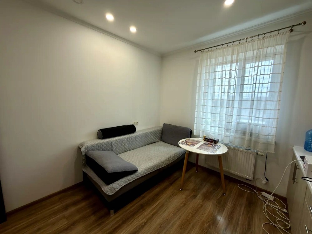 Кімната 15.1 кв.м, в ній – велика шафа-купе, двоспальний диван, стіл, телевізор. Казковий вид з вікна на схід сонця!