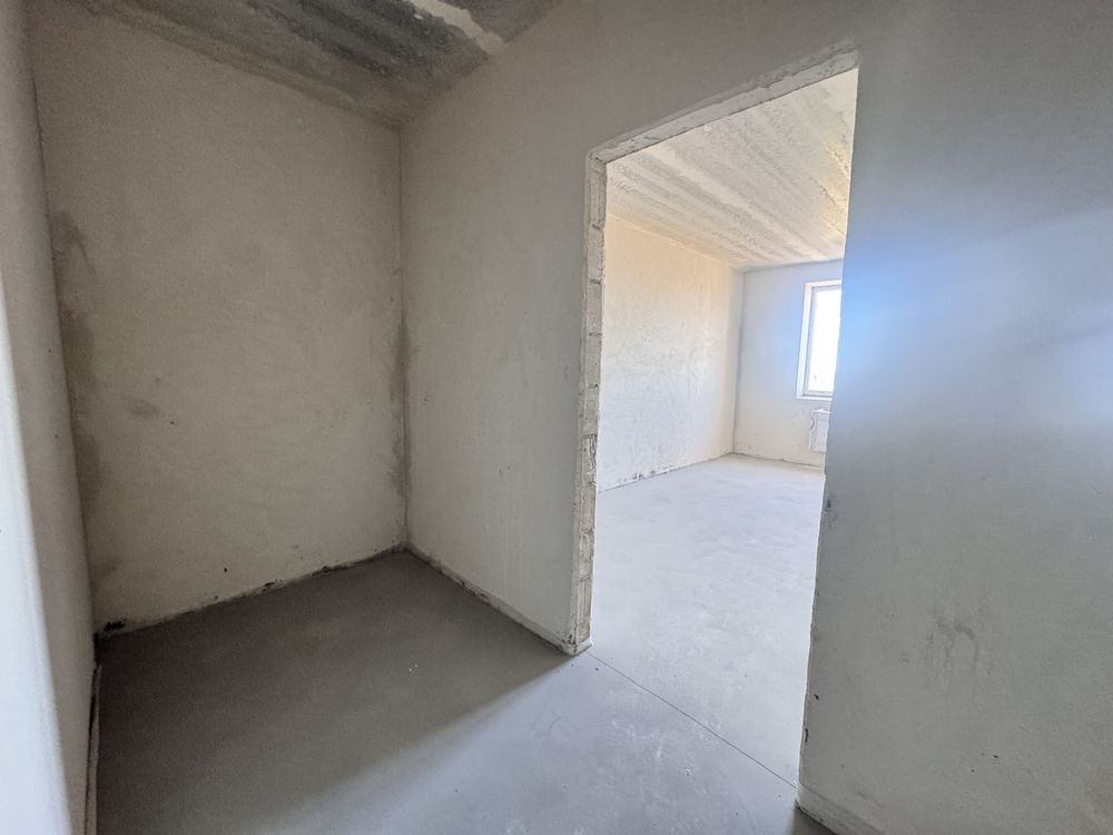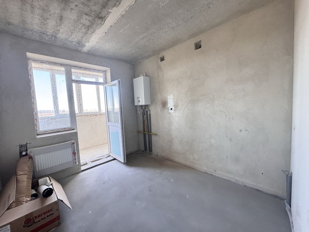 Квартира після будівельників, зроблена штукатурка стін, стяжка підлоги(окрім санвузла), котел двохконтурний, радіатори, лічильник на світло, воду і газ.Є великий засклений балкон.