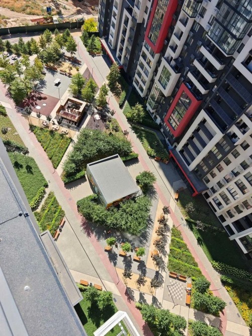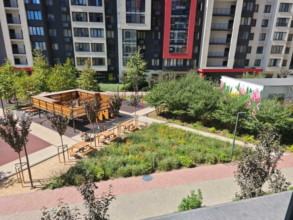 Зелёный район с аллеями для прогулок и зонами отдыха