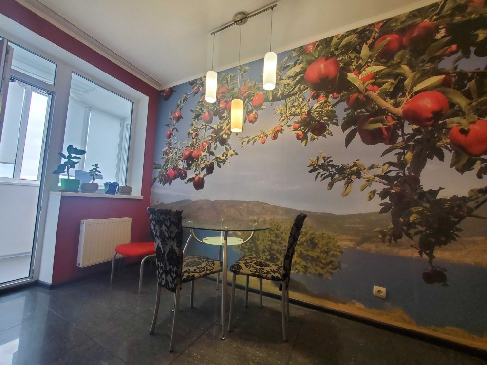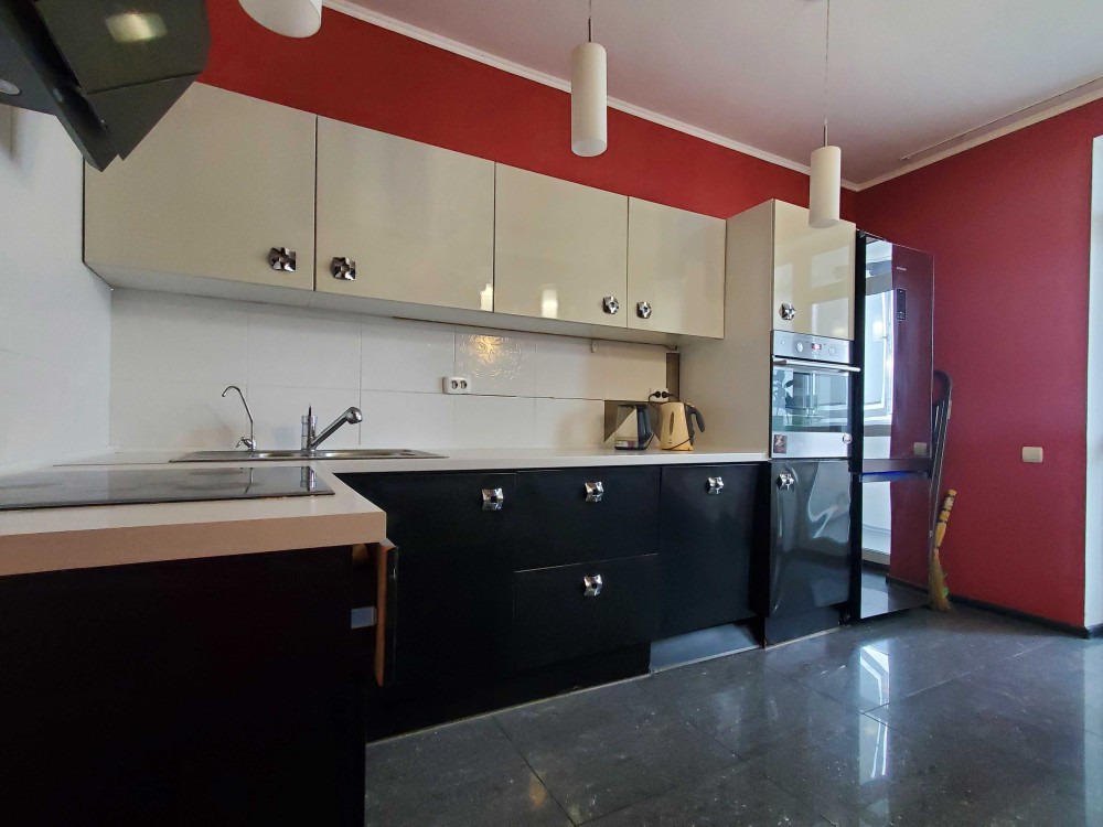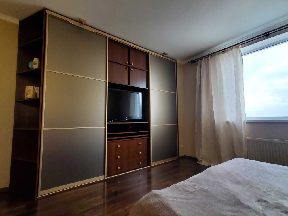 Продам світлу, простору, затишну 1-но кімнатну квартиру по проспекту Леся Курбаса, 7б, ЖК "Ново-Микільський" у Святошинському районі м. Києва, 17/21 поверх, площею 52 кв.м., кухня – 12 кв.м. Квартира має просторий коридор, простору світлу кухню, балкон, окрему простору спальню, повністю оснащена усіма необхідними меблями та технікою (пральна машина, холодильник, посудомийна машина, електроплита, духова шафа, посуд, укомплектована спальня, телевізор, гардероб, ванна).