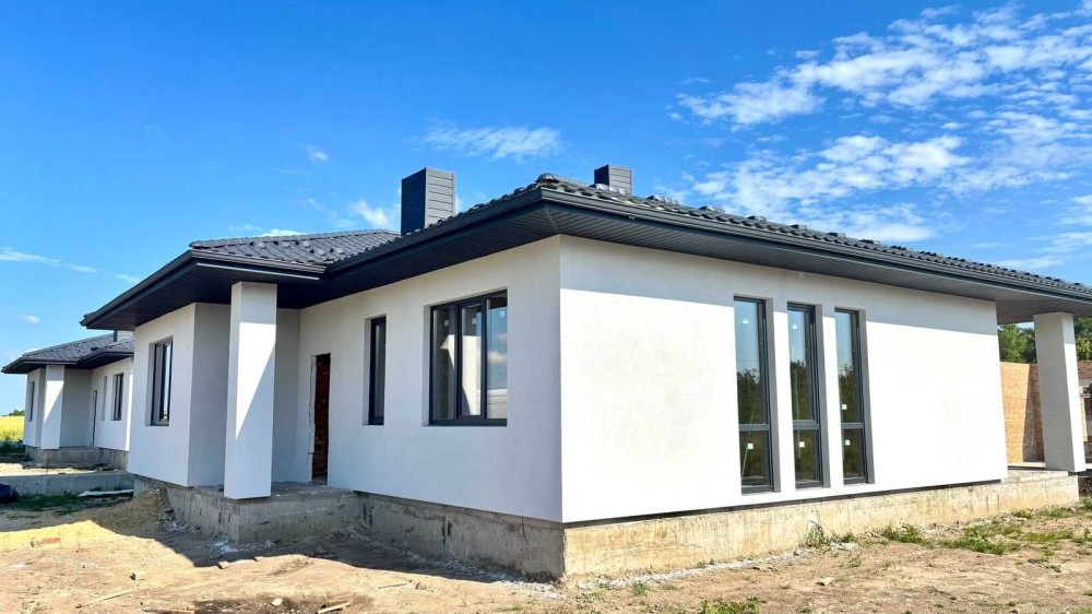 Незавершений одноповерховий будинок загальною площею 150кв.м., 3 спальні, кухня-вітальня з виходом на терасу. гараж, 7 соток.