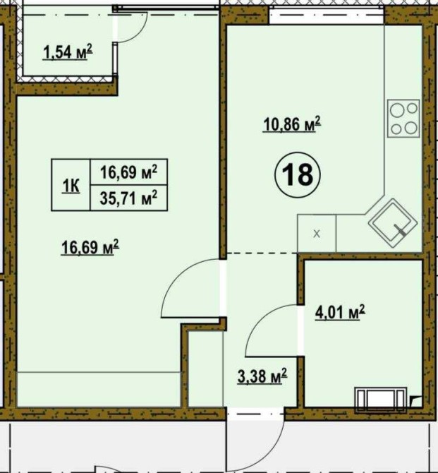 • Загальна площа 35.71 м2