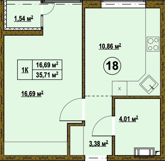 Житлова площа: 16.69 м²
