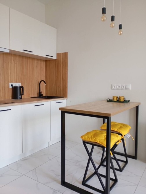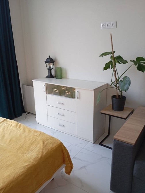 Квартира з сучасним ремонтом в новому ЖК з закритою територією, укомплектована меблями: диван, ліжко, тумби, полички, стіл, стільці. Холодильник, мікрохвильова піч, пральна машина.