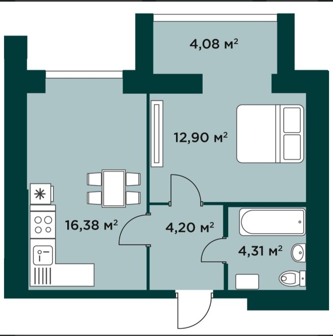 • Площа кухні 16.38 м2