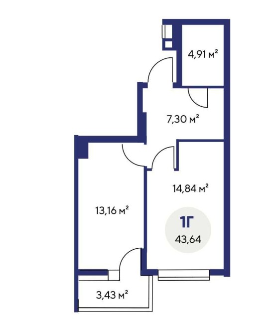 Площа — 43,64 м²