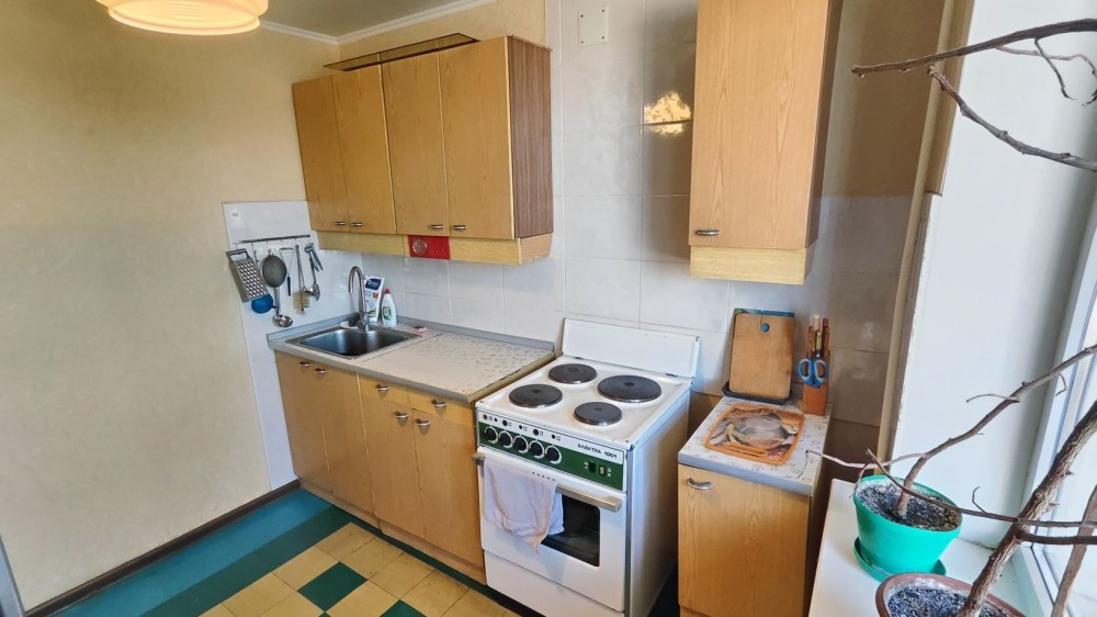 Загальна площа: 38,8 м², житлова 18,7 м², кухня 7,1 м², велика лоджія на всю ширину квартири, є комора.
