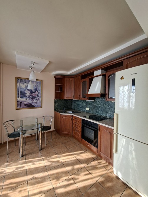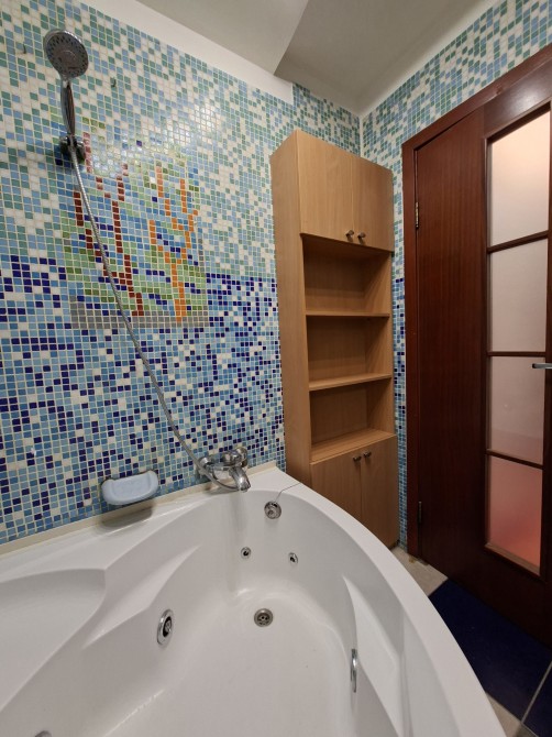 Кухонні вмонтовані меблі, шафи для зберігання речей,комп ютерний стіл, гардеробна,на кухні тепла підлога, двоспальне ліжко, кутовий розкладний диван, пральна машина, кондиціонер, холодильник, духова ел. шафа, кутова ванна з робочим гідромасажем.