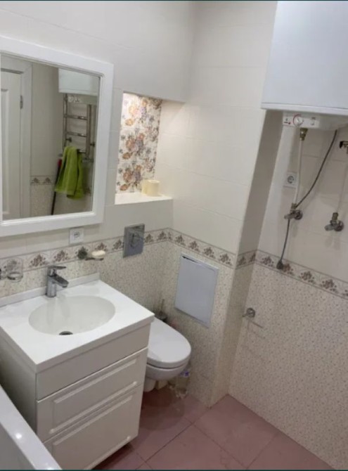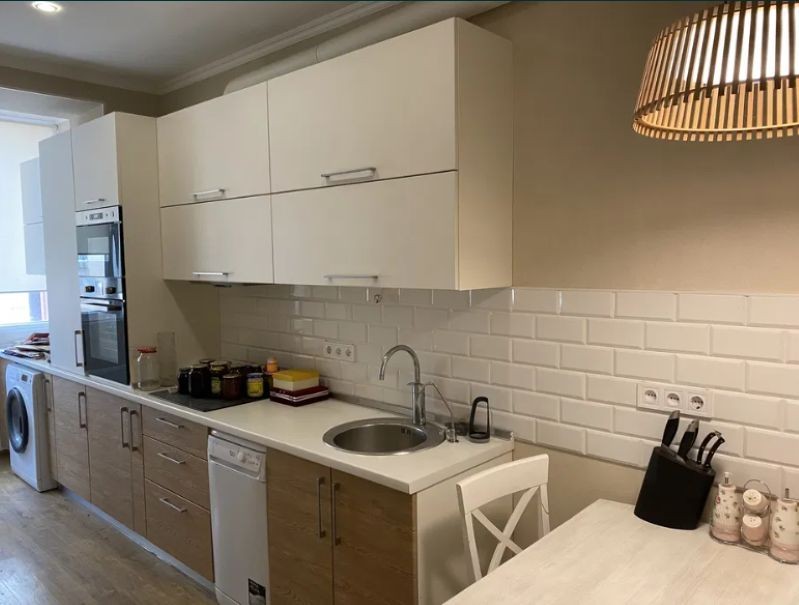 Есть посудомоечная машина, 2 кондиционера, холодильник side-by-side, телевизор, интернет.