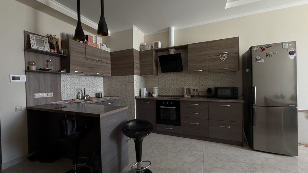 Квартира полностью укомплектована мебелью и бытовой техникой.