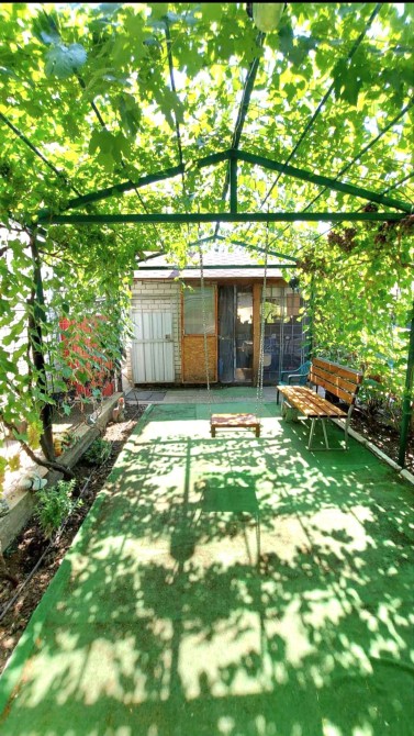 Территория очень ухожена. Шикарная беседка из винограда!