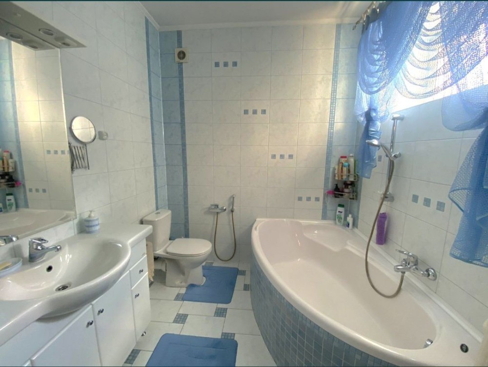 Продам 2-х этажный Дом 160 м2 на 5 сотках. Построен в 2005 году. Земля приватизирована. Дом из камня ракушняка, облицован белым кирпичем. Крыша двухскатная- шифер. Потолки 3 м на первом этаже, 2.80 м - на втором. Центральный водопровод и канализация. Газовый и электрический котлы, три кондиционера. Два накопительных бака по 2 куба.