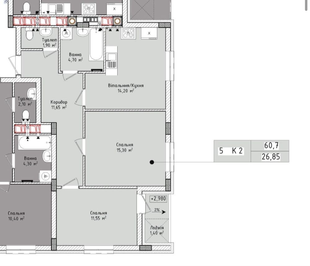 • Загальна площа 60 м2