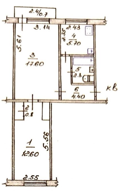 • Площа кухні 5.7 м2