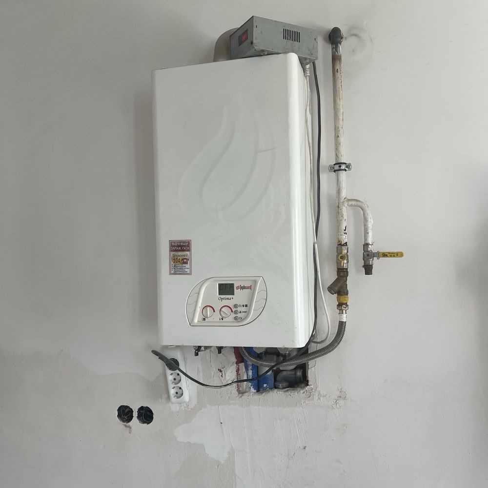 Опалення- газовий двохконтурний котел.