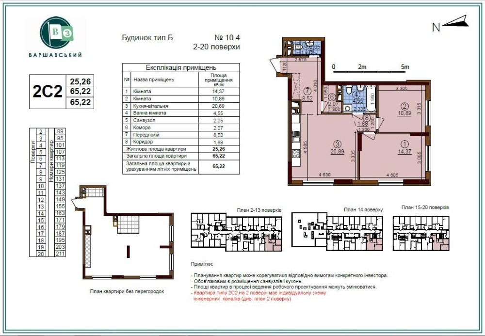 Площа 65/25/21м2. План 2С2.