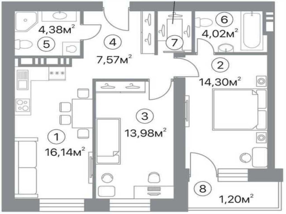 Загальна площа: 64 м²