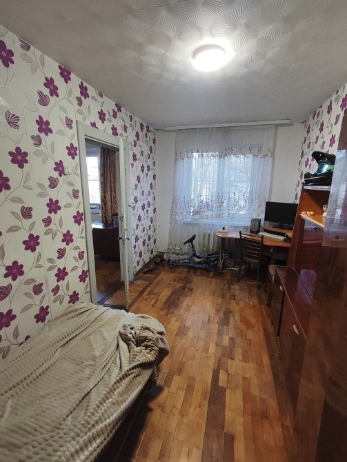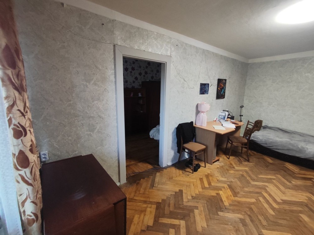 Кімнати суміжні - через велику кімнату прохід до спальні або дитячої, другої кімнати. В кімнатах на підлозі паркет Квартира тепла. Взимку було опалення та гаряча вода.