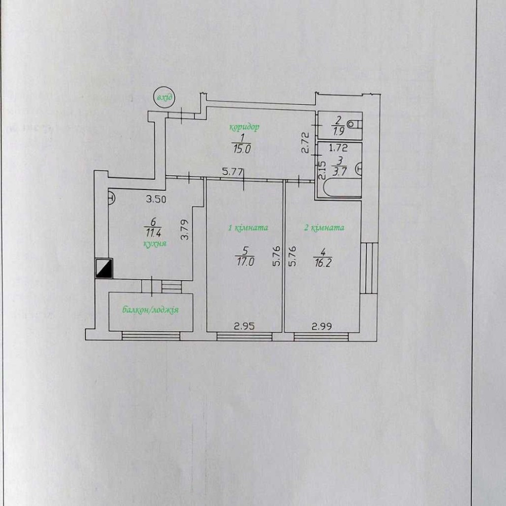 2 кімната - 17 м².