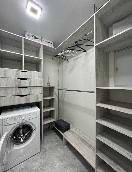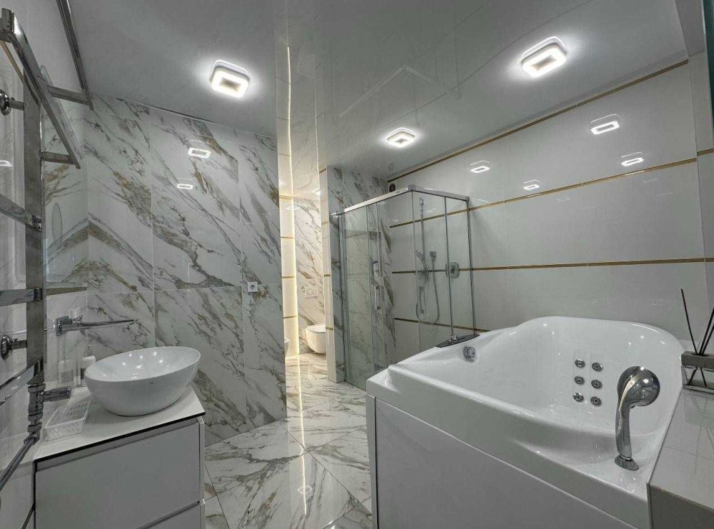 Планировка: кухня-студия, спальня, гардеробная, санузел с джакузи и душевой.