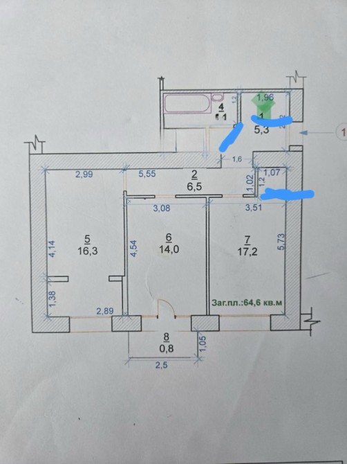 • Загальна площа 64.6 м2