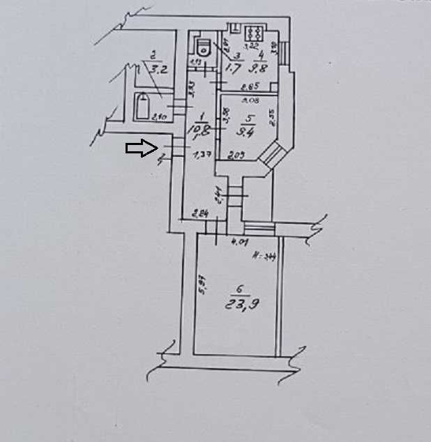 Світла простора квартира 60/25+13/9кв.м. на 2/6-поверхового цегляного дореволюційного будинку з ліфтом, високі стелі 3.2м, товсті зовнішні стіни.