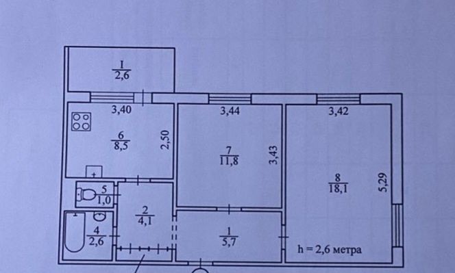 Загальна площа квартири 55кв.м