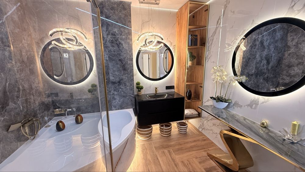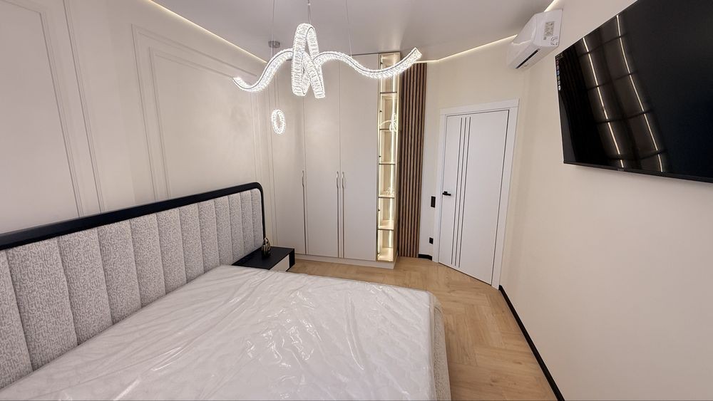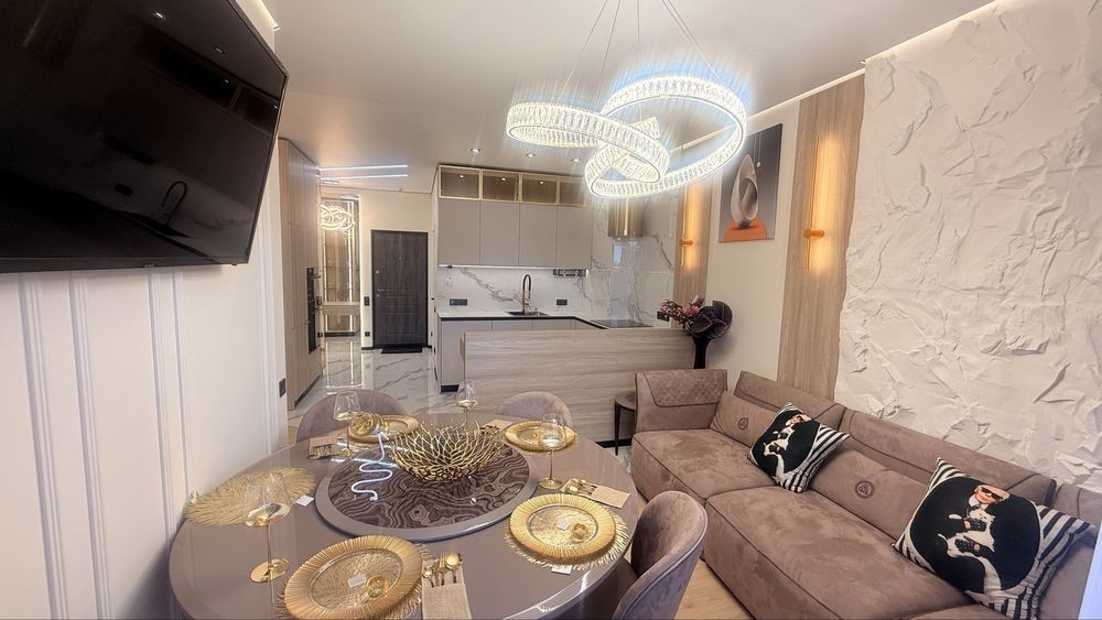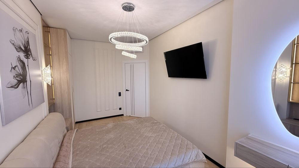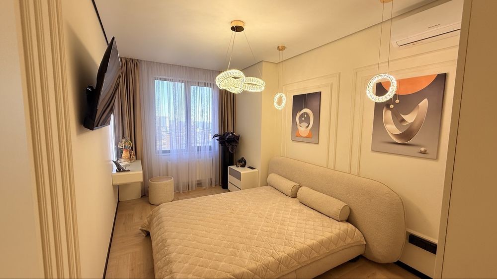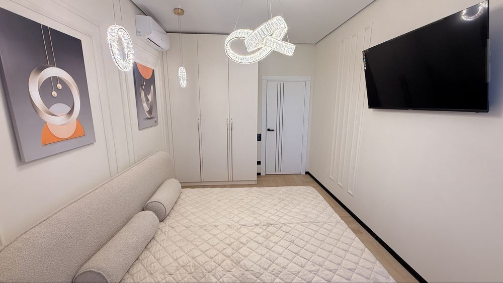Интерьер выполнен в современном дизайнерском стиле с использованием качественных материалов, стильного освещения и тщательно подобранной мебели. Пространство наполнено светом, гармонией и атмосферой настоящего комфорта.