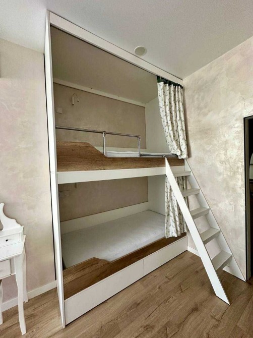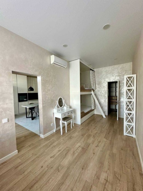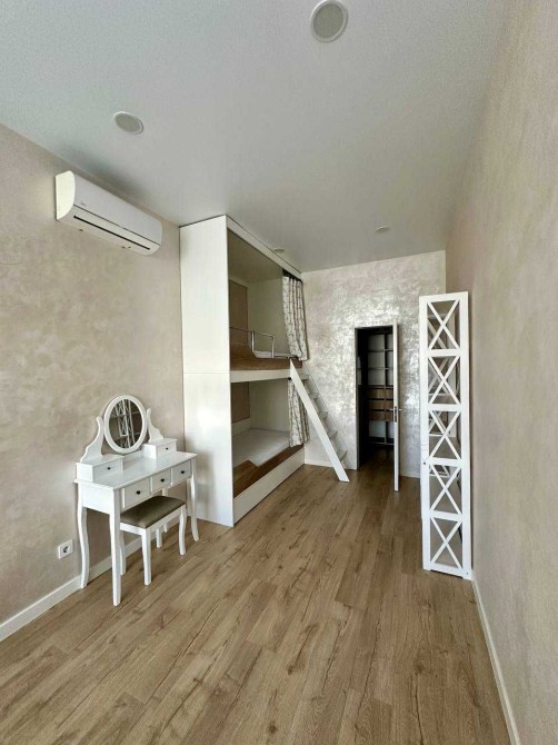 Квартира містить:кухню-студію,спальню з гардеробною і дитячу кімнату з гардеробною,2 санвузли.Багато місця для зберігання речей.