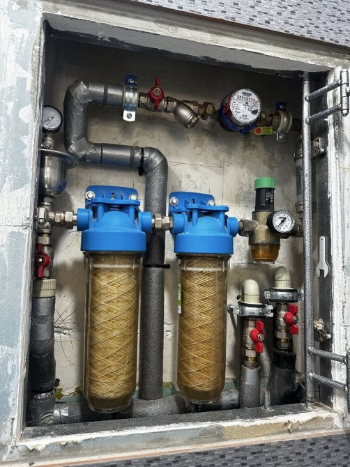 Заведены все новые коммуникации, новый красивый кафель( установлена система очистки воды )