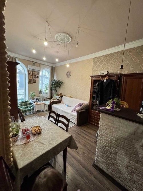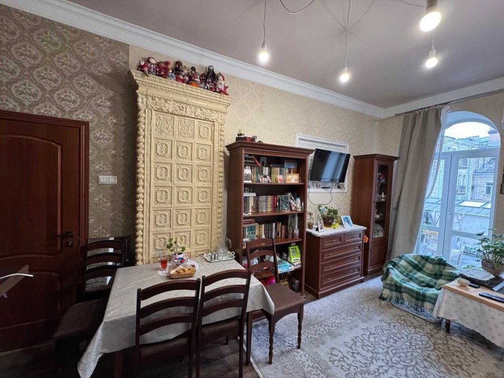 Висота стелі 3,5 метра. Квартира має двостороннє планування. Зберігся "рідний" камін тих часів, цегляні стіни, масивна дошка на підлозі у коридорі та балкон-тераса, яка виходить у тихий затишний двір,