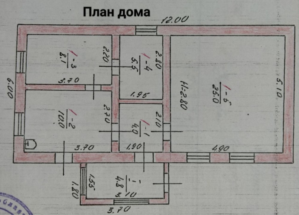 Дом общ.пл 52,6 м кв., жилая 48,6 (25/5,5/8,2/10)