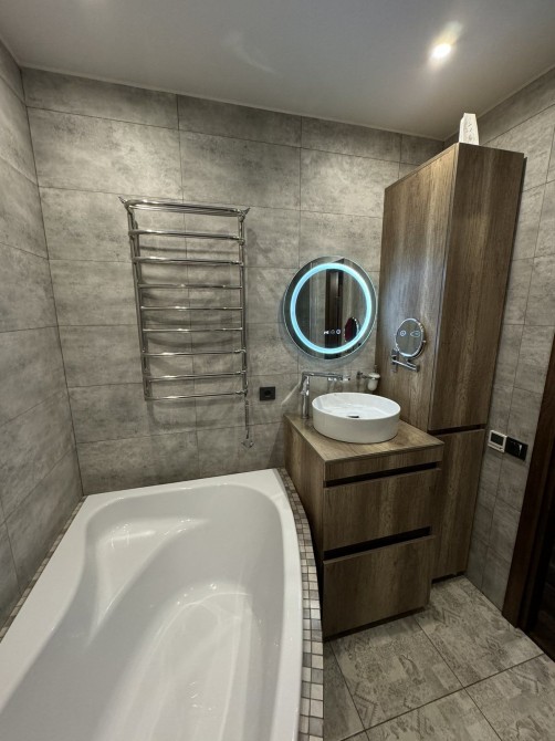 Квартира находится на 7 этаже девяти этажного дома. Полностью утеплина по кругу. В квартире две больших спальни, гардеробная с хоз балконом, хол и кухня со столовой, совмесный санузел. Все делалось с нуля и все новое. Два кондиционера. Теплые полы в ванной, кухне и на мансардном балконе.