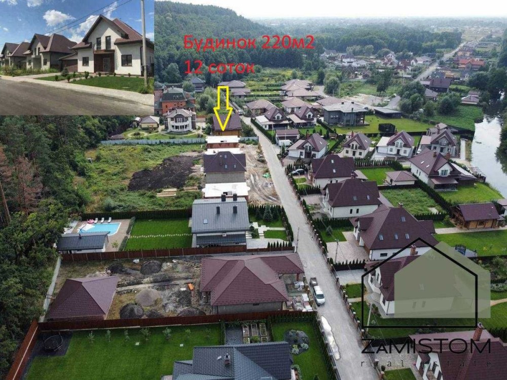 Продаж будинку 220 м2 в котеджному містечку. Село Гнідин (Гнедин, Гнідин), Бориспільського р-ну., 8 км до межі міста. Котедж 2022 року побудови, два поверхи. 1 поверх, - гардеробна, санвузол, спальня, кухня студія з виходом на терасу, вітальня з каміном. 2 поверх, - 4 спальні, два санвузол, гардеробна. Дах 54 м2,- гардеробна. На стінах під чистове оздоблення (під фарбування або поклейку шпалер), підігрів підлоги і зовнішніх стін по всьому будинку. Енергозберігаючі, вітражні вікна Rehau Brillant Design. Якісні вхідні двері з італійськими замками Mottura. Польська металочерепиця Прушинський (Pruszynski): чудовий вибір для українського клімату, 260 грам цинку на 1м2, єдина в світі. Розводка електрики, датчики регулювання температури в шкірної з кімнат. Централізоване водопостачання (Юрская вода, 228 метрів). Тепловий насос!!! Ділянка 9 соток, огороджена парканом з цегли і куванням, залита вимощення, покладена тротуарна плитка 120 м2 (старе місто), ворота і хвіртка з виходами під автоматику, встановлений септик з дренажним полем. Відеоспостереження та охорона. У 30 метрах зарибнений канал з альтанками і вимостками, 60 метрів до соснового лісу. На території містечка, дві гостьових парковки і магазин. Приїжджайте, - Ви будете приємно здивовані і більше Ви нікуди не захочете їхати. Представник забудовника, без комісії !!! Ціна 220000 у.е. Постійний зв'язок через Viber,Telegram, WhatsApp. Найбільший вибір будинків і ділянок. Номер оголошення №53. Дивіться інші оголошення автора. Більше об’єктів нерухомості на нашому сайті АН "ZaMistom"