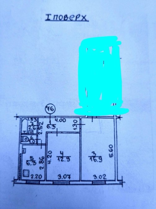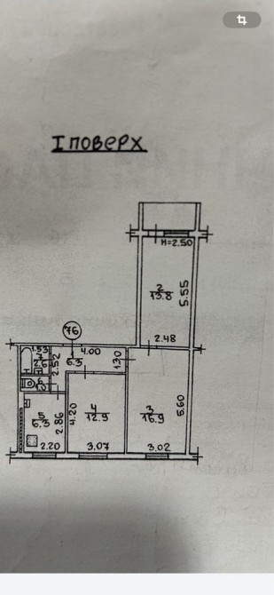Квартира трикімнатна, площа 2/3 частин -42м.