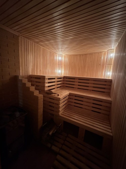 На першому поверсі розташовані кухня, сауна, басейн і санвузол. На другому поверсі кімната відпочинку і спальня. Все обладнено технікою і меблями.