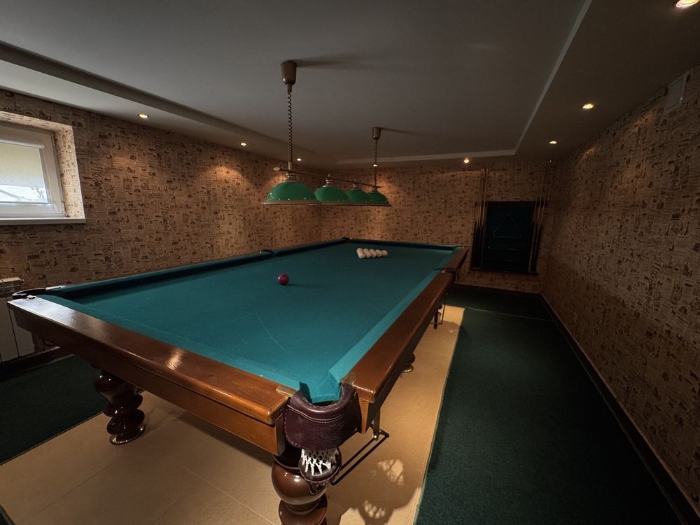 На цокольному поверсі є більярдний зал, санвузол, технічна кімната, гараж.