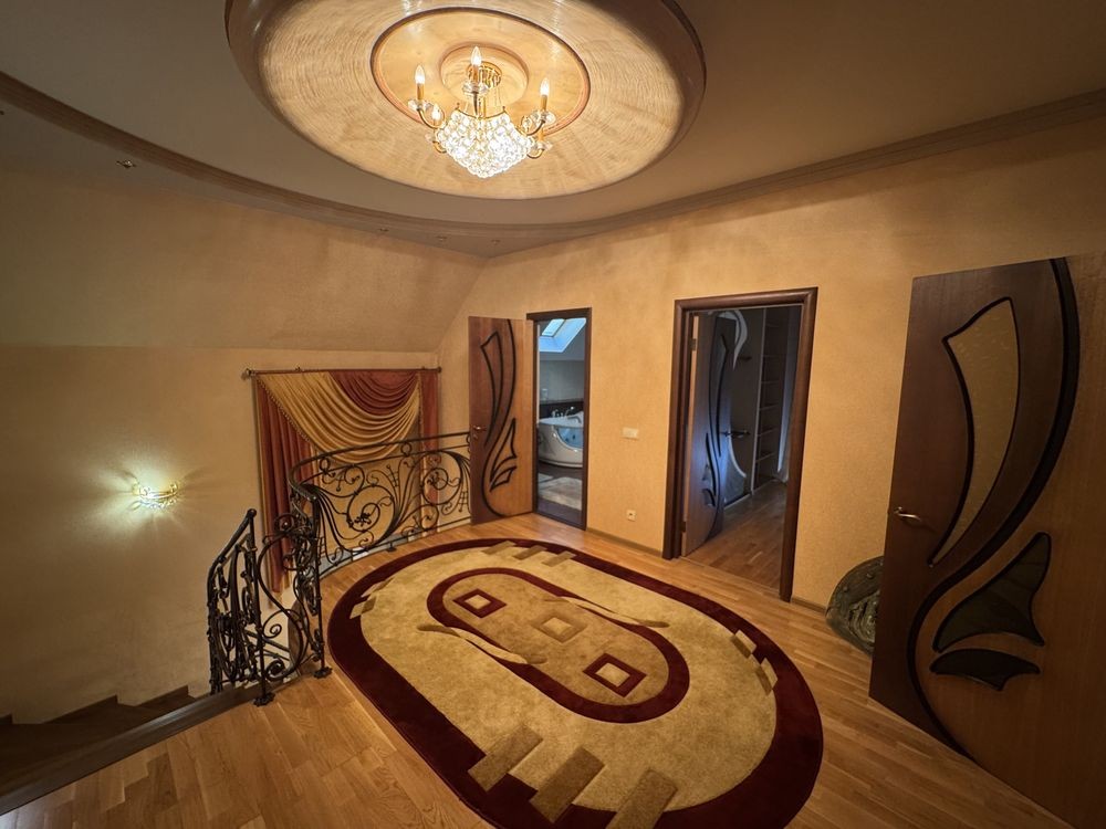 На другому поверсі хол, три окремі спальні, санвузол з джакузі, гардеробна. Підлога паркет.