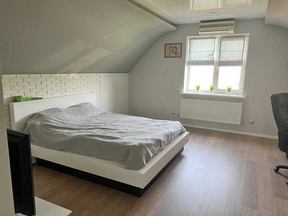 Терміновий продаж 2-о поверхового просторого і якісно-збудованого за індивідуальним архітектурним проектом, будинку площею 176 м² в с. Пухівка в Броварському р-ні. Будинок розташований в престижному закритому товаристві з охороною. Будинок побудований з червоної цегли, утеплений мінеральною ватою ватой ROCKWOLL 80 мм, фасад з цегли Фагот, кровля - фінська бітумна черепиця "katepal", двокамерні вікна "Века" з автоматичними захисними ролетами кольору золотий дуб, декоративна штукатурка, іспанская плитка, дуб паркет-дошка, імпортна сантехніка. Ділянка розміром 14 соток має правильну прямокутну форму, за проектом розміщено індивідуальний житловий 2-о поверховий будинок та гараж на 2 авто (53м2). Планування будинку забезпечує комфортне проживання великої родини. Планування: 5 спален, кухня, вітальня, 2 с/в. Якісний ремонт, дерев'яні меблі, кухонний гарнітур з натурального дубу. Під’їзд до будинка асфальтованою освітленою дорогою, глухий кут вулиці з виходом на піщаний пляж р. Десна, поруч ліс, озера, ресторан, магазин, зупинка громадського транспорту та бази відпочинку. Живописне, красиве місце, чисте повітря, для постійного проживання, все навколо забудовано. Інженерія та комунікації: Електрика — Виділена лінія електроенергії на 20кВт. • Газовый двоконтурний котел • Електрокотел • Діючий камін • Бойлер • Система очищення води • Кондиціонери • Підключено інтернет • Автоматичні ролети на вікнах. • Скважина • Каналізація — два переливні дренажні септики • Автополив • Сигналізація та відеоспостереження • Автоматичні ворота. Будинок продається з меблями та технікою. 218000 у. о. Можливий торг!