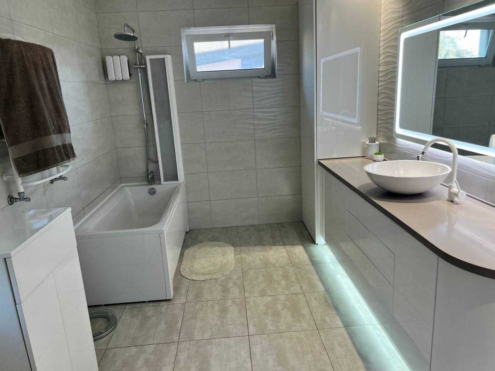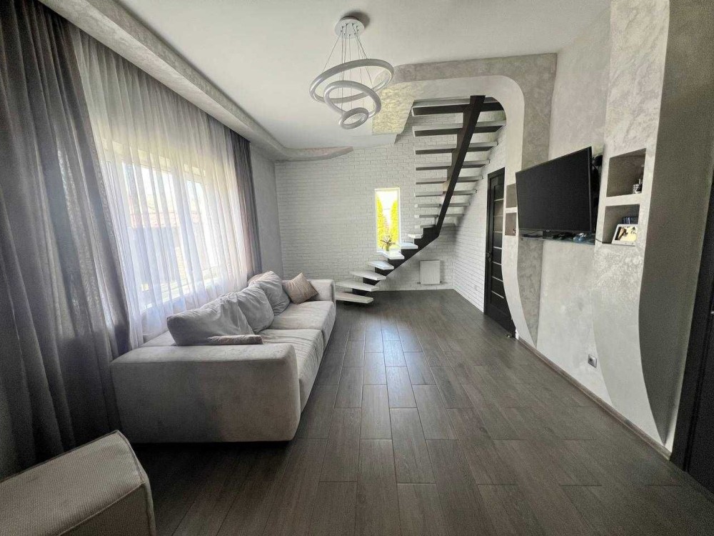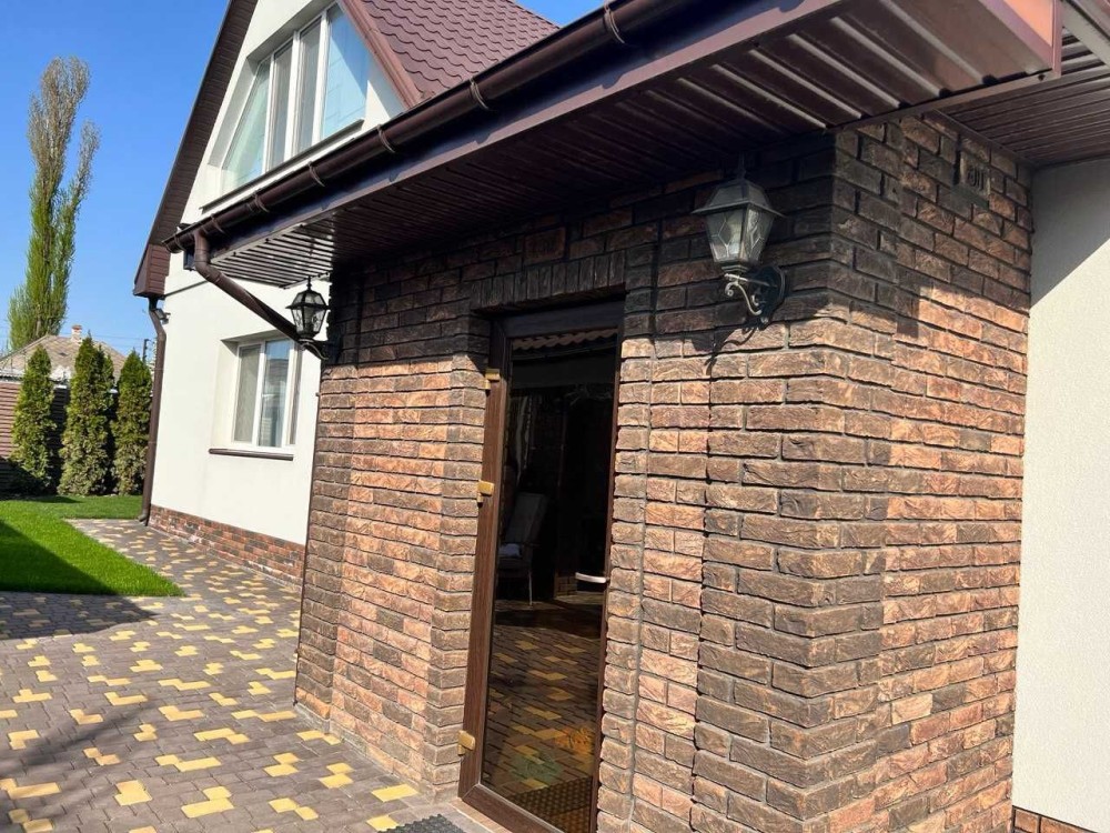 Дом построен на участке в 6.1 соток. Имеет 3 вида отопления: газовый двухконтурный котел, твердотопливный котел в синхроне с газовым, и электрические теплые полы. Первый этаж - водяные и электрические теплые полы, в спальнях радиаторы. Если не будет газа то есть еще бойлер. Также имеется 3 скважины: одна на полив, вторая в дом, третья законсервирована. Стоит хорошая система очистки воды на весь дом, в доме дополнительно стоит система обратного осмоса. Дом построен качественно, поэтому в нем как в термосе, зимой тепло, когда нет света, то держит тепло очень долго (за двое суток упала температура с 24 до 19 градусов когда был блекаут), летом в доме прохладно, мы за все время проживания включали кондиционер всего пару раз.