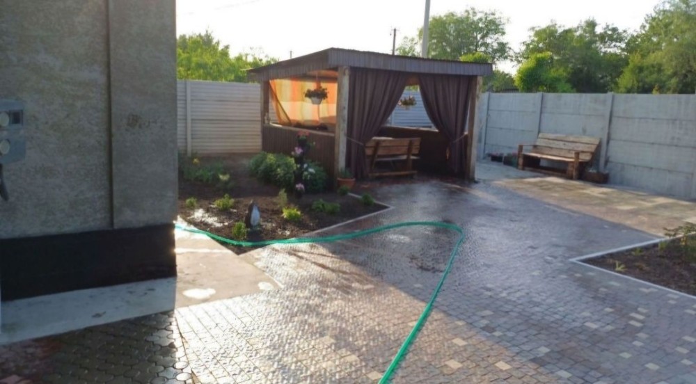 • Двор выложен тротуарной плиткой