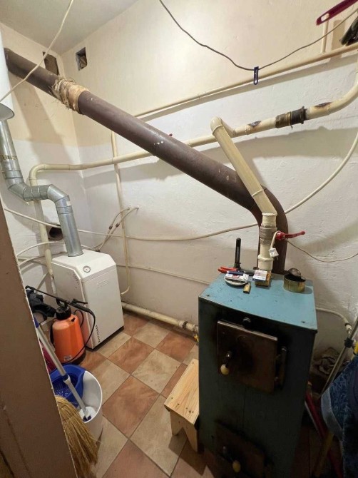 Котел 2-х контурний, твердотоплевний, резервуари води (вода є завжди, навіть коли її вимикають)