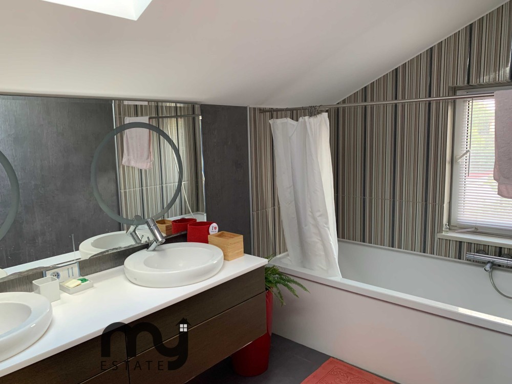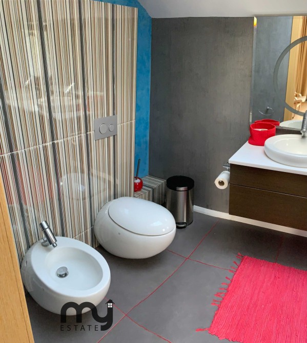 • Санвузли: санвузол першого поверху має італійську сантехніку: умивальник з дзеркалом, унітаз і душову. На другому поверсі – ванна, унітаз, умивальник. У головній спальні також є власний санвузол з ванною, італійською дизайнерською сантехнікою, двома умивальниками, унітазом та біде. Санвузли другого поверху мають мансардні вікна.