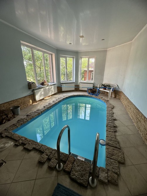1-й поверх - вітальня з каміном, простора кухня, санвузел, хол, басейн та сауна, гараж з автоматичними воротами.