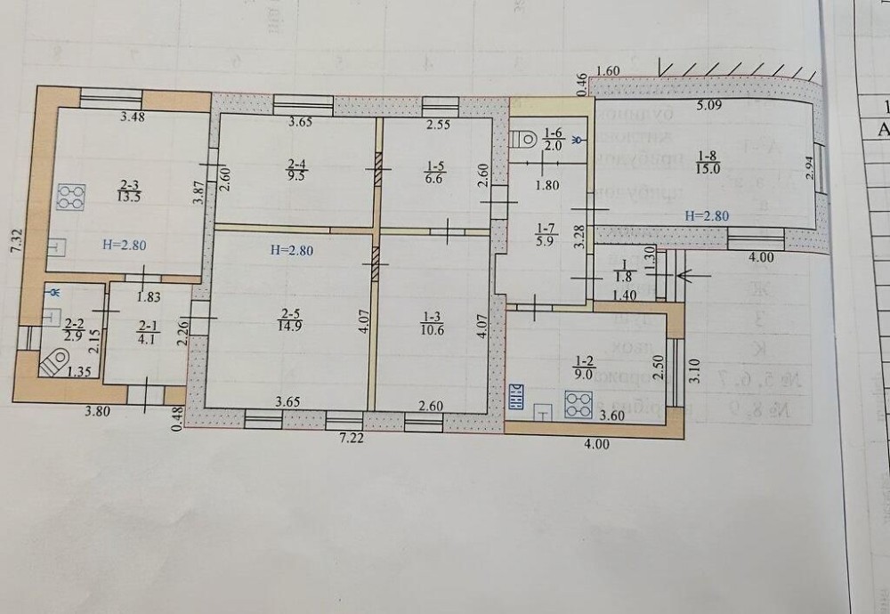 Будинок на два входи , в кожній половині є ванна, с/в і кухня.