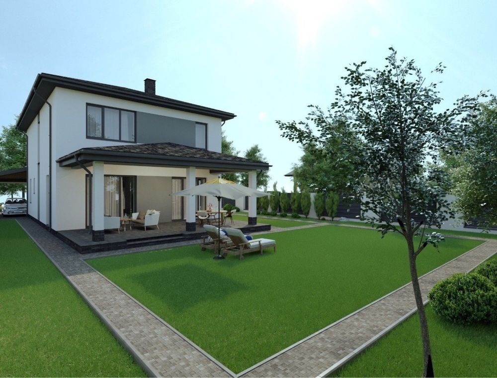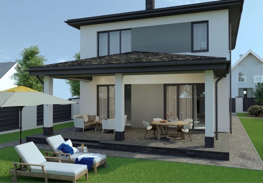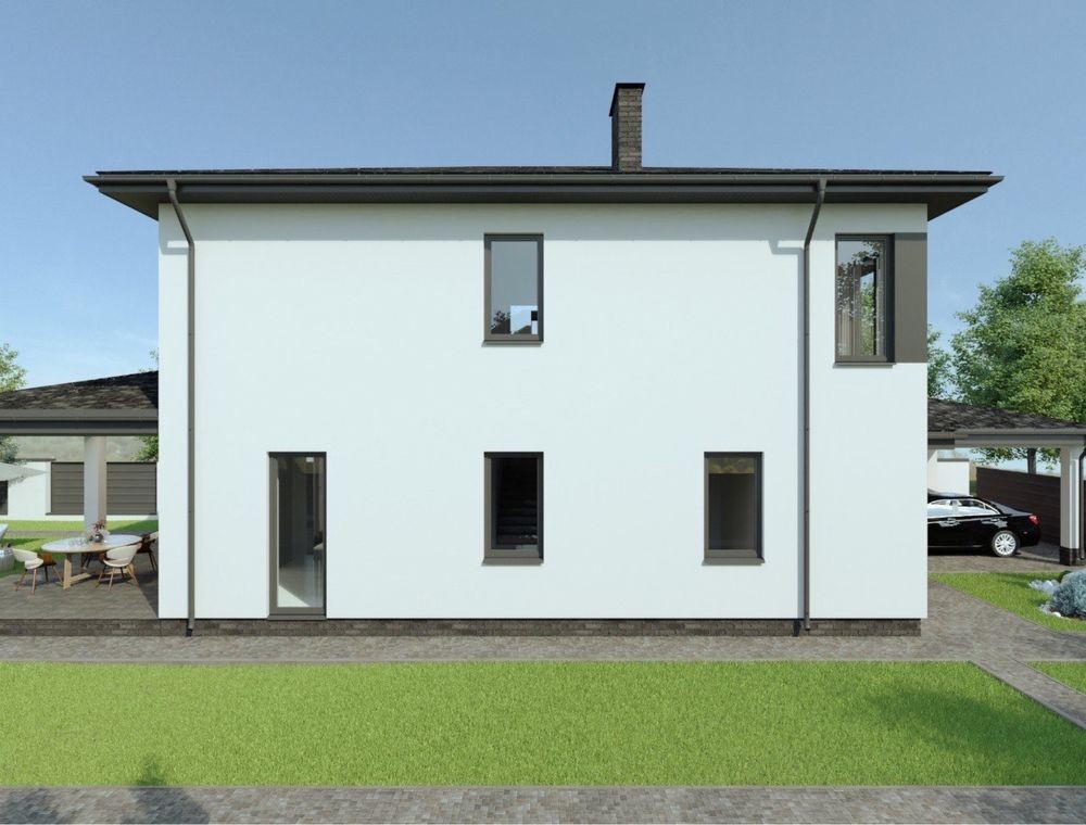 Загальна площа враховуючи навіс і терассу 251м.кв, корисна площа будинку 196 м.кв.