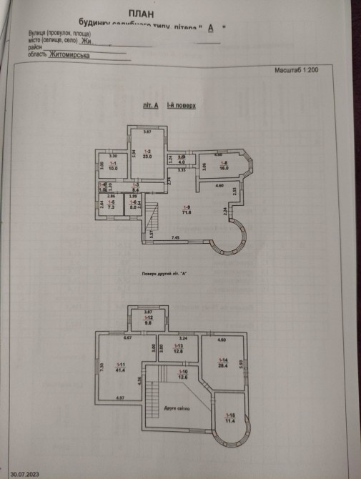 Продається новий індивідуальний житловий будинок котеджного типу загальною площею 131 м.кв. під чистове оздоблення, розташований в селі Крячки Фастівського (колишнього Васильківського) району Київської області на території нового житлового масиву із сучасною котеджною забудовою, що перебуває на відстані 20 км від станції метро «Теремки» міста Києва та за 1,5 км від міста Васильків. Житловий будинок складається з першого та мансардного поверхів. Загальна площа будинку із допоміжними спорудами становить 173,1 м.кв., з яких: а) площа будинку ‒ 131,0 м.кв., у тому числі житлова (основна) ‒ 94,1 м.кв. та допоміжна (підсобна) ‒ 39,6 м.кв.; б) площа тераси – 23,1 м.кв.; в) площа трьох балконів – 13,4 м.кв. (5,8 + 4,9 +2,7 м.кв.); площа ґанку – 5,6 м.кв. Котедж вміщує в собі 5 (п’ять) доволі просторих кімнат, 2 (два) санвузли (на кожному із поверхів), 1 (одне) технічне приміщення (котельня або бойлерна), 2 (два) коридори, 1 (одну) вітальню із виділеною еркером обідньою зоною, що поєднана з кухнею. Із вітальні є окремий вихід на велику терасу, з якої відкривається затишний вигляд на внутрішній двір. Кожна з трьох мансардних кімнат має окремий вихід на балкон. Над усією площею мансардного поверху розташоване містке горищне приміщення. Будинок приєднаний до електропостачання потужністю ‒ 12кВт (3 окремих фази). Має свердловину глибиною 55 метрів із фактичним дебітом (спроможною потужністю) ‒ 2,5 м.куб./год. та каналізацію септик з переливом на 11 м.куб. На усій площі першого (крім житлової кімнати) та у санвузлі мансардного поверхів встановлена система водяної теплої підлоги фірми «Rehau». По котеджу розведені: опалення, водопостачання і каналізація. В будинку передбачена можливість встановлення камінної топки, а також приєднання котеджу до газорозподільної мережі та всесвітньої мережі Інтернет. Індивідуальний житловий будинок розташований на земельній ділянці площею 0,075га з цільовим призначенням – (02.01) для будівництва і обслуговування житлового будинку, господарських будівель і споруд (присадибна ділянка). Під житловою забудовою перебуває 0,0115га земельної ділянки, решта 0,0635га займає просторий двір. Кадастровий номер земельної ділянки: 3221487004:03:006:0328. Земельна ділянка огороджена парканом із монолітного фундаменту, що опорядковане металевим штахетом із обох боків та металевим профілем з тильної та фасадної сторін. Заїзд у двір має відкатні ворота. На території двору (перед будинком) облаштоване загальне паркомісце на 2 (два) автомобіля, решта двору засіяне газонною травою. Котедж побудований з якісних матеріалів за проектом європейського архітектурного бюро. Так, фундамент, перекриття та міжповерхові сходи ‒ монолітні. Стіни будинку збудовані з газоблоку AEROC D500 (товщиною 300мм), що утеплений пінопластом 100мм. Внутрішні міжкімнатні перегородки виконані із цегли. Дах ‒ металочерепиця фірми «Ruukki», що утеплений мінераловатними плитами загальною товщиною 200мм. Вікна вироблені з профілю фірми «Rehau» серії EVRO 70. Фасад котеджу покритий акриловою штукатуркою. Будинок за усім периметром має вимощення шириною 0,9 метри, що облаштоване фігурними елементами мощення (ФЕМ). Зручне ергономічне планування будинку, а також наявність високих стель обох поверхів дає можливість відчувати себе вільно і затишно. Завдяки правильному утепленню зовнішніх стін будинку, у ньому прохолодно влітку та тепло вз